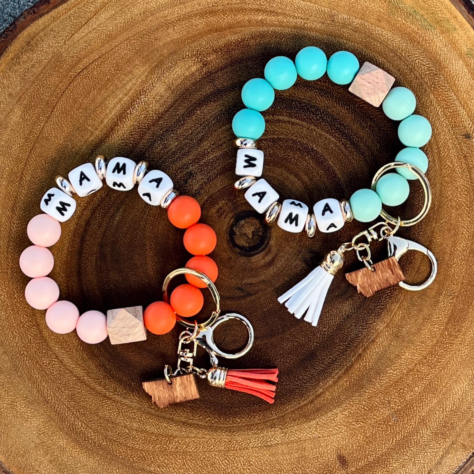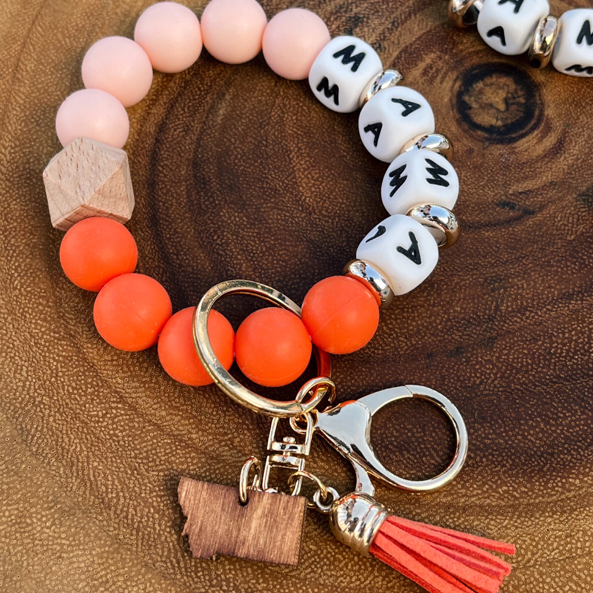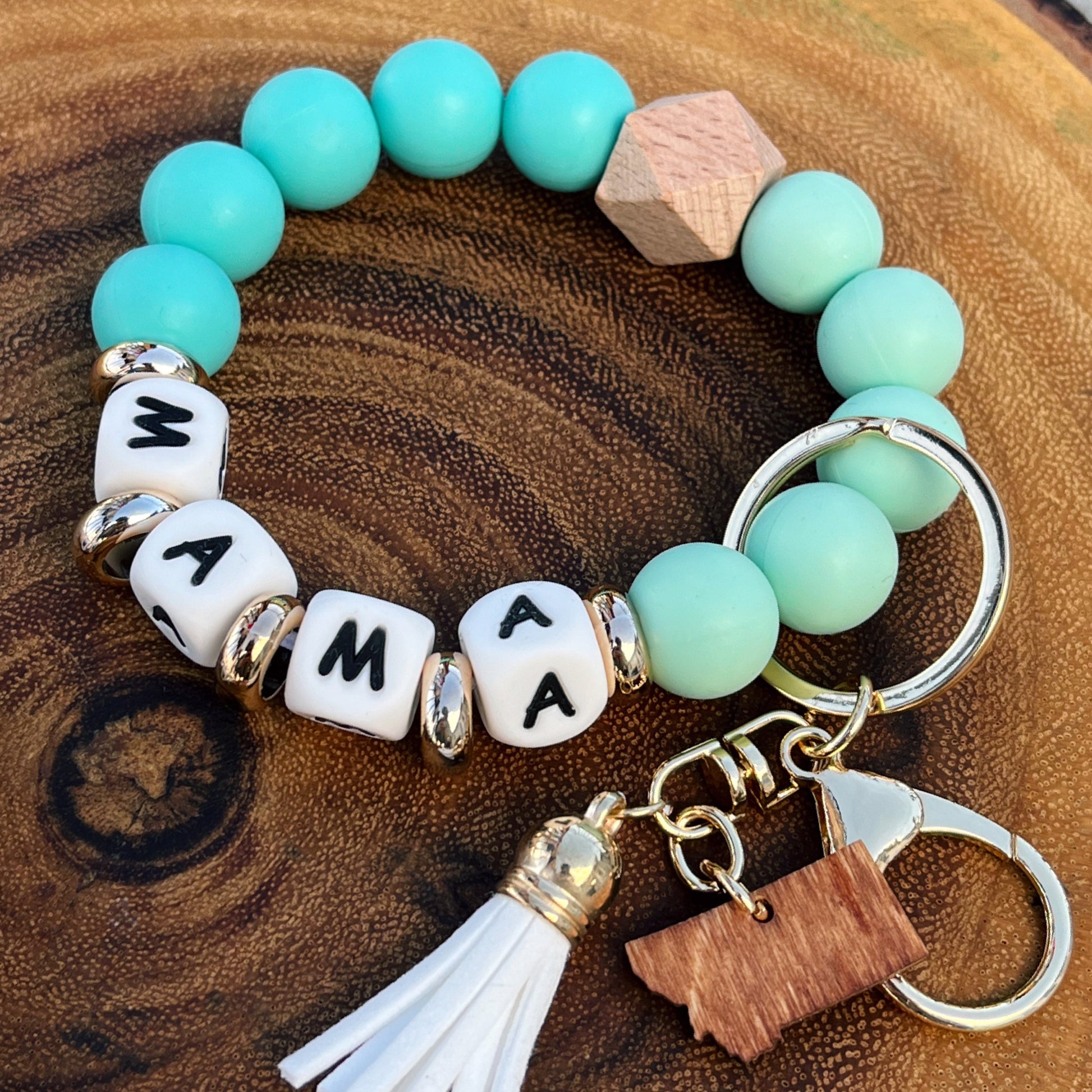 CLOSEOUT! MONTANA MAMA SILICONE BEAD KEY RING BRACELET